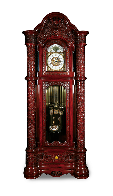 煙臺美時嘉公司製造,全球限量發(fā)行。龍鍾鐘殼材質(zhì)為花梨木,鐘盤為琺瑯,配以德國原裝赫姆勒九音管機(jī)心,具有月相顯示、音樂報時報刻(西敏寺、聖米切爾、威靈頓三種音樂)、靜音及夜間自動靜音、報時報刻關(guān)閉等功能。鐘身共刻有56條龍,象徵中國56個民族緊緊團(tuán)結(jié)。正面有主龍及二龍戲珠、龍鳳呈祥、攀龍等九龍組成;側(cè)面有降龍及九龍群圍,涵蓋了中國傳統(tǒng)龍文化的典故。